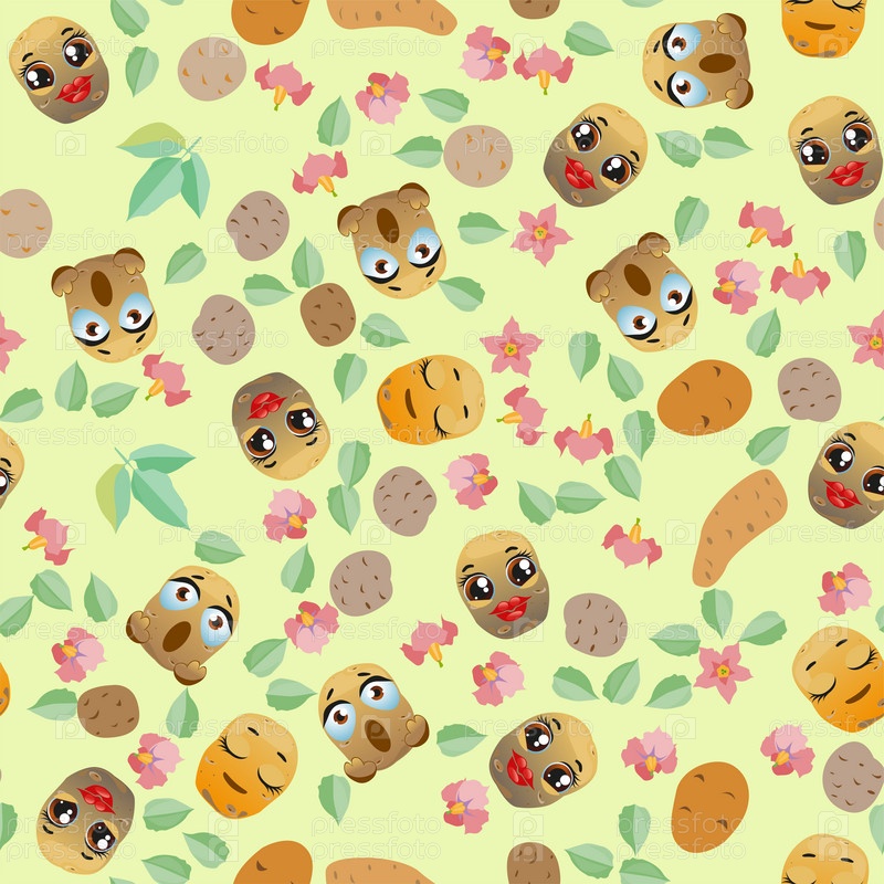 Бесшовный картофель. Смешные милые лица персонажей