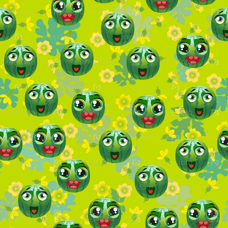 Бесшовный овощной арбуз. Смешные милые лица персонажей
