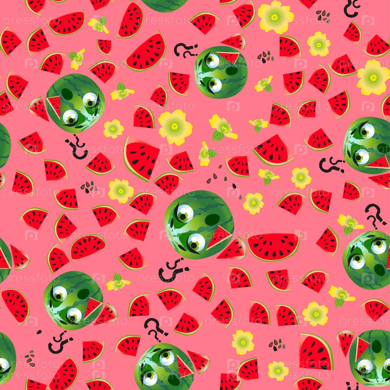 Бесшовный овощной арбуз. Смешные милые лица персонажей