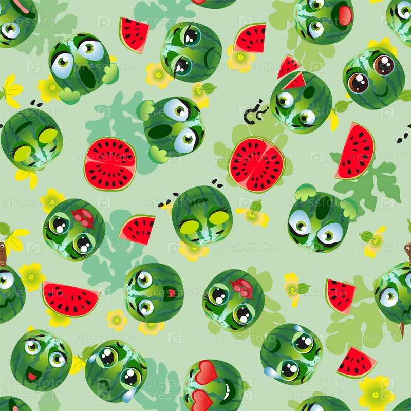 Бесшовный овощной арбуз. Смешные милые лица персонажей