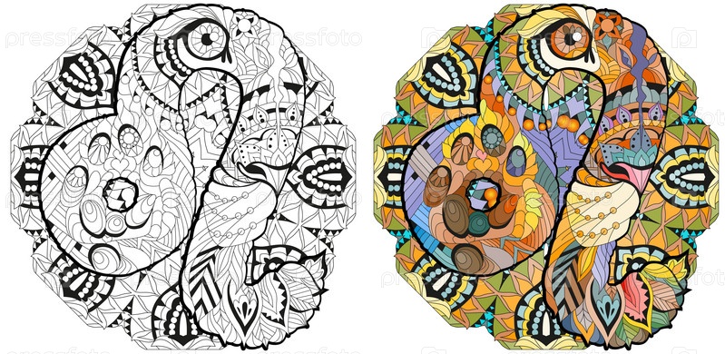 Знак зодиака Лев с мандалой, концепт-арт астрологии. Дизайн татуировки. Набор цветов и контуров