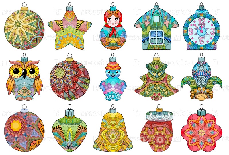 Zentangle стилизованный рождественский набор украшений. ручной рисунок векторного кружева