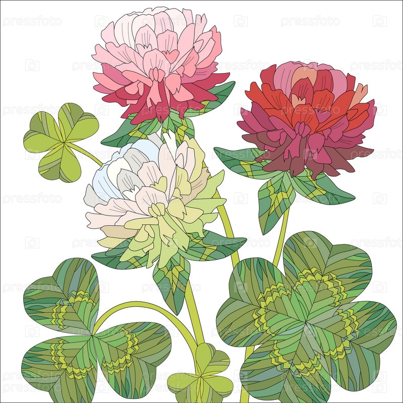 Цветы красного и белого клевера с листьями