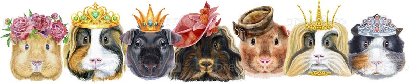 Милая морская свинка. Свинья для графики на футболках. Набор акварельных морских свинок