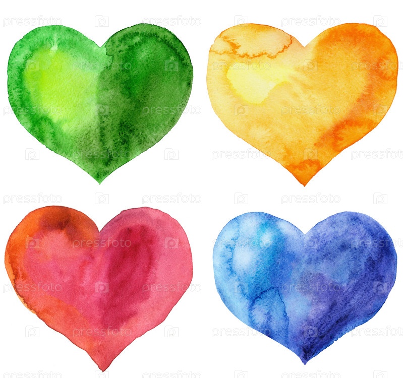 Набор акварельных сердец разных цветов