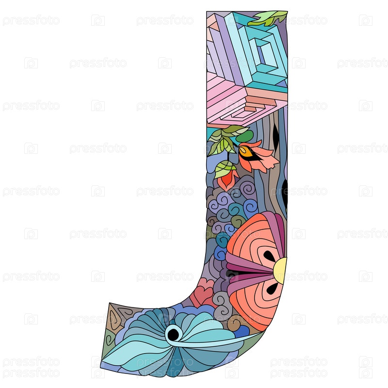 Стилизованный алфавит Zentangle - буква J. Векторная иллюстрация Этнический шаблон