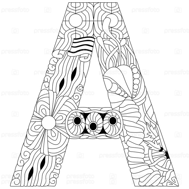 Zentangle стилизованный алфавит - буква А для окраски. векторная иллюстрация. этнический шаблон