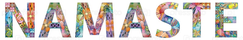 Иллюстративное слово NAMASTE окрашено в теплые тона для дизайна футболок, татуировок и других украшений