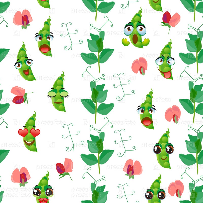 Бесшовный рисунок с зеленым горошком смайликов. Смешные милые лица персонажей