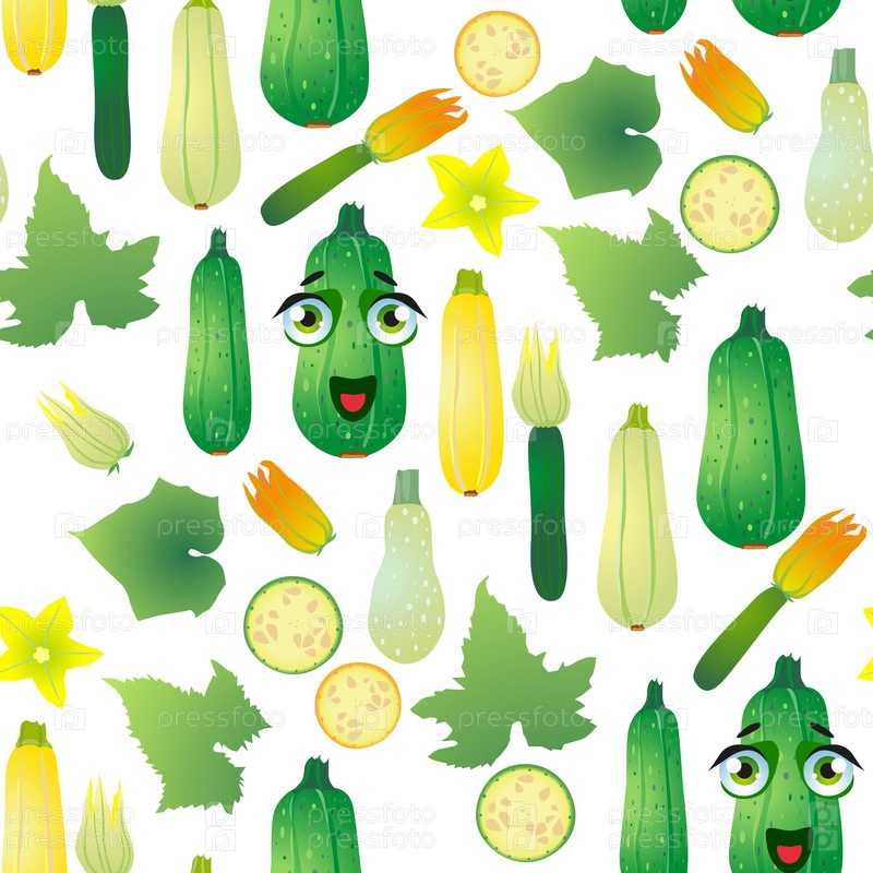 Бесшовные овощные кабачки. Смешные милые лица персонажей
