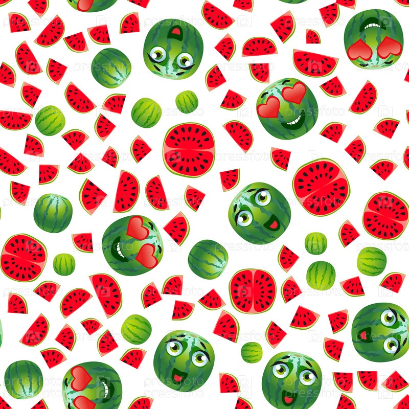 Бесшовный овощной арбуз. Смешные милые лица персонажей