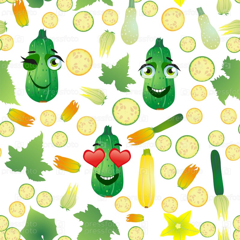 Бесшовные овощные кабачки. Смешные милые лица персонажей