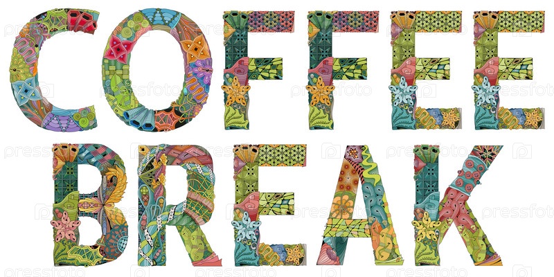 Художественный дизайн ручной росписи.Ручная рисование слов COFFEE BREAK для футболок и других украшений