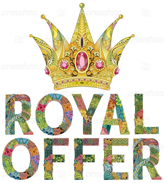 Корона со словами royal предлагает зентагле в стиле дизайна футболок, татуировок и других украшений