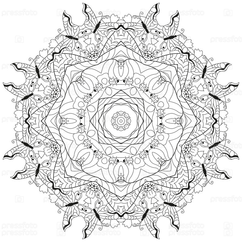 Векторные текстуры книги раскраски для взрослых. Художественный дизайн ручной росписи. Антистрессовая раскраска для взрослых. Черно-белая ручная иллюстрация для раскраски