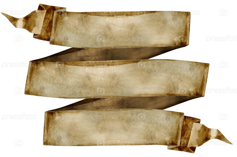 Акварель винтажная коричневая лента. Ручная роспись баннеров на белом фоне