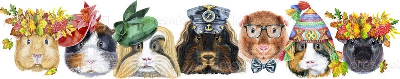 Милая морская свинка. Свинья для графики на футболках. Набор акварельных морских свинок