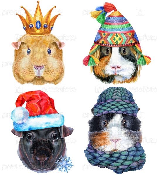 Морские свинки для графики на футболках. Акварельная иллюстрация тощей морской свинки