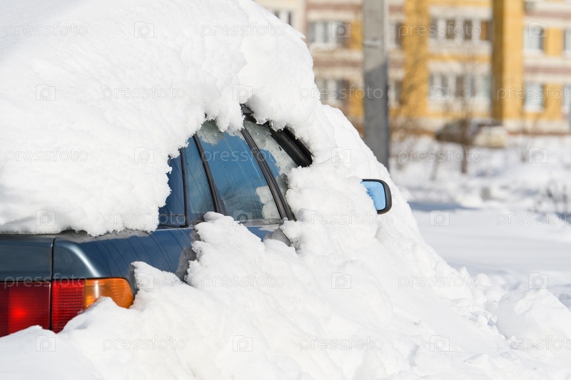 Брошенная машина стоит в сугробе. Автомобиль покрыт толстым слоем снега