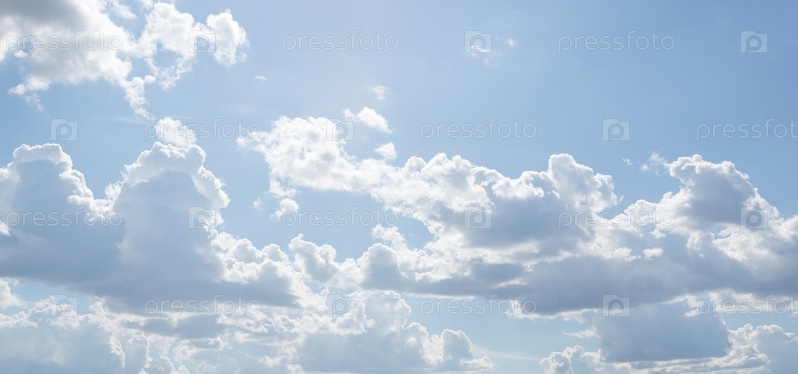 Голубое небо в солнечный день. Мягкая текстура пушистых облаков. Концепция воздушных легких снов и путешествий