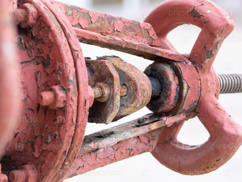 Ржавый газовый клапан (смеситель) с облупившейся краской, селективный фокус крупным планом