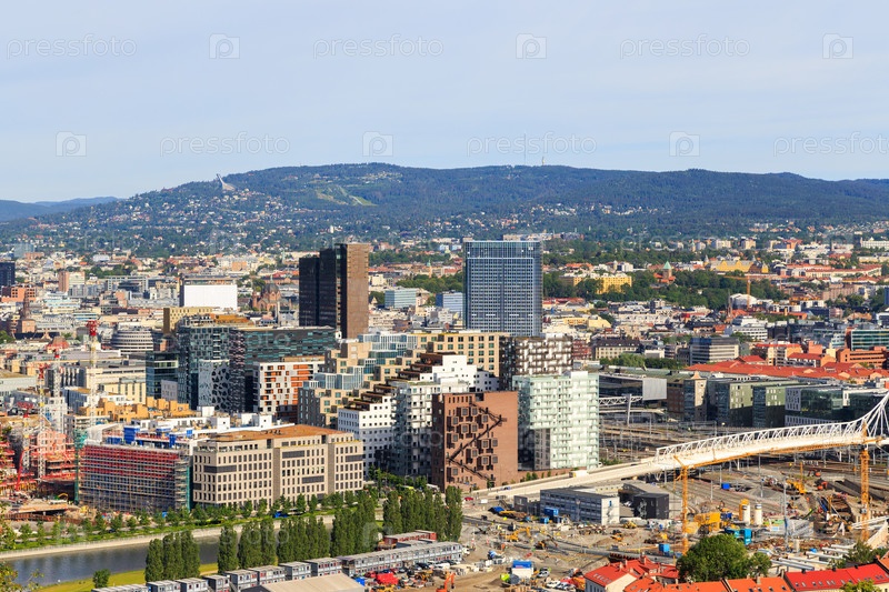 Осло, Норвегия. Панорама деловой части города без вывесок