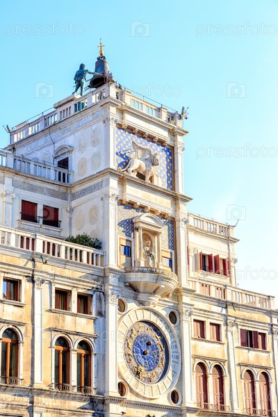 Венеция, Италия. Часовая башня Святого Марка (Torre dell'Orologio). памятник архитектуры раннего Возрождения. одна из самых известных достопримечательностей города