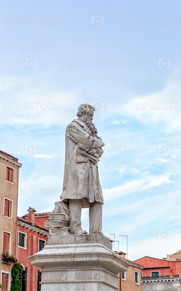 Венеция, Италия. Большой мраморный памятник итальянскому лингвисту, журналисту и писателю Никколо Томмазео. Скульптор Франческо Барзаги (1839 - 1892)