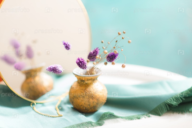 Маленькая золотая ваза с сухоцветами