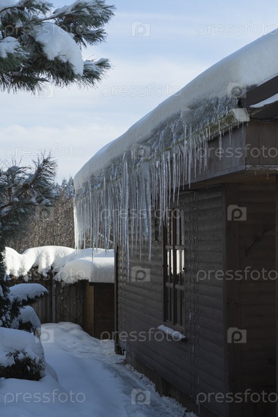 Сосульки на крыше частного дома