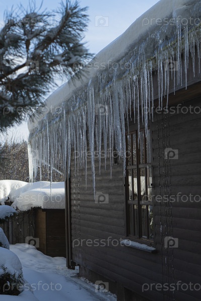 Сосульки на крыше частного дома