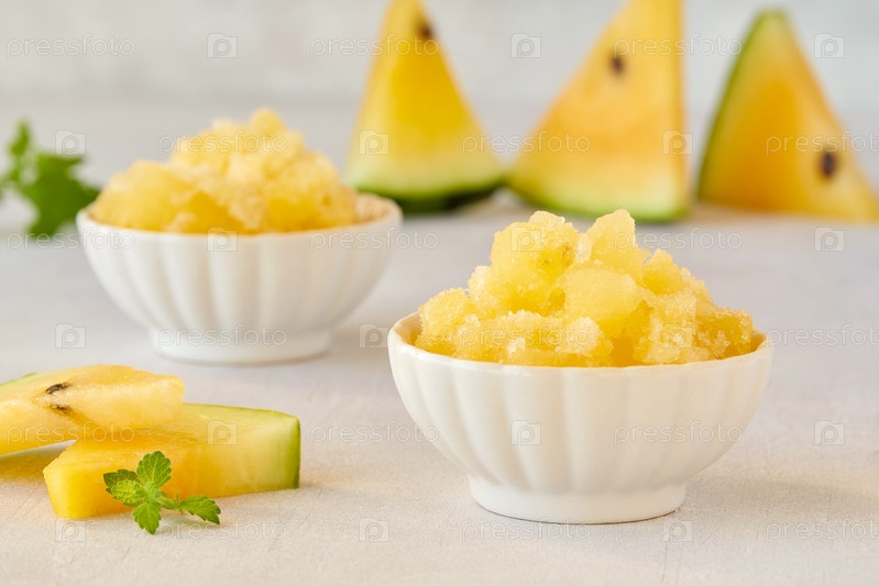 Гранита из желтого арбуза или сорбет с листьями мяты