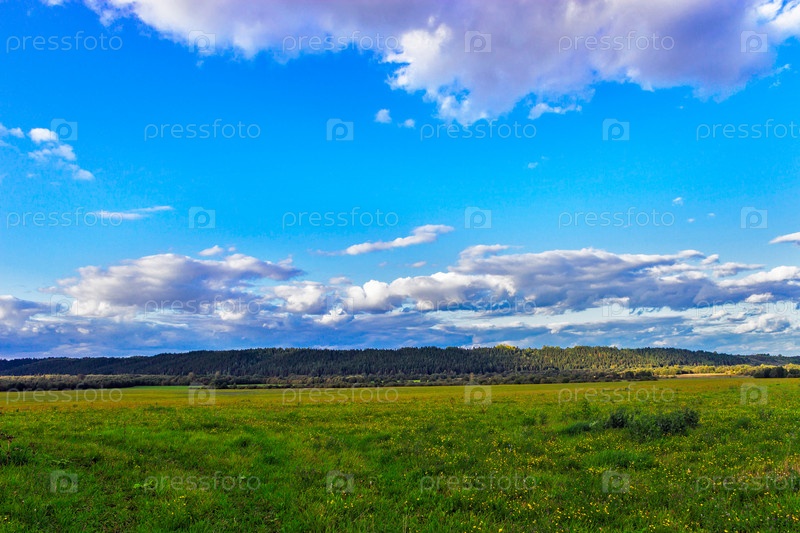 Луг и холмы с хвойным лесом вдали