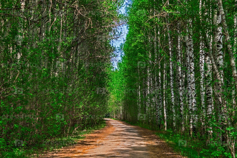 Пейзаж с красивой березовой и тополиной аллеей в солнечный летний день