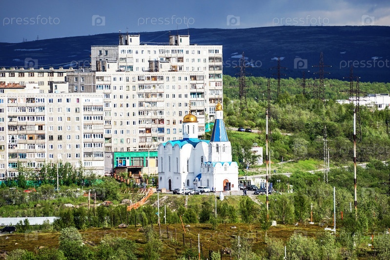 Мурманск, Россия. Городской пейзаж со зданиями и архитектурой