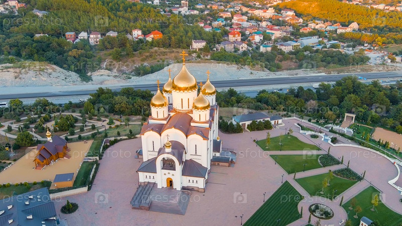 Геленджик, Россия. Собор Андрея Первозванного. Время заката, Вид с воздуха
