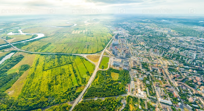 Рязань, Россия. Река Ока. Панорама города. С высоты птичьего полета
