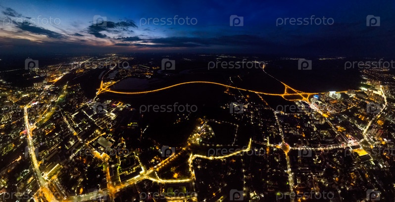 Рязань, Россия. Огни ночного города. С высоты птичьего полета