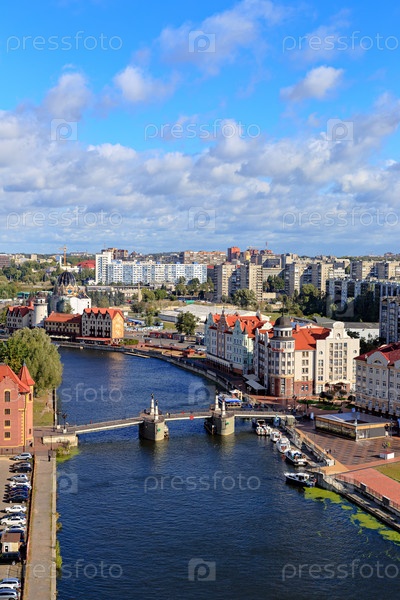 Центр города Калининград. Маяк в Рыбной деревне, Юбилейный мост. Россия