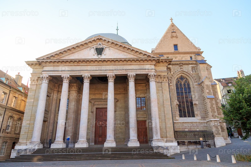 Женева, Швейцария. Женевский собор. Собор, известный проповедью Жана Кальвина, одного из лидеров Реформации