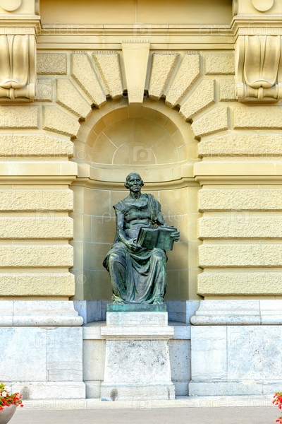 Берн, Швейцария.Статуя 'Историк прошлого' (Geschichtsschreiber der Vergangenheit) работы Мориса Реймонда де Брутеля (18621936).Федеральный дворец Швейцарии