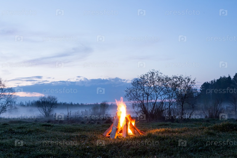 Костер вспыхивает и гаснет. Приближается ночь