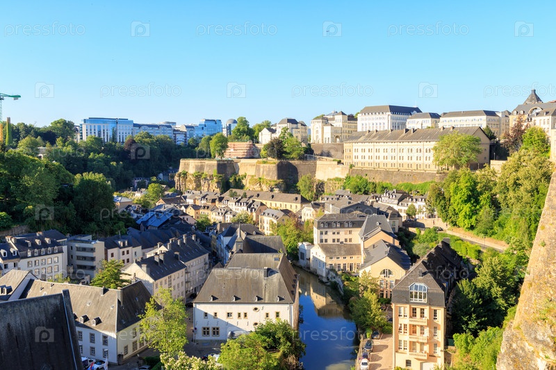 Люксембург город, Люксембург. Река Альзетт, вид на Грунд