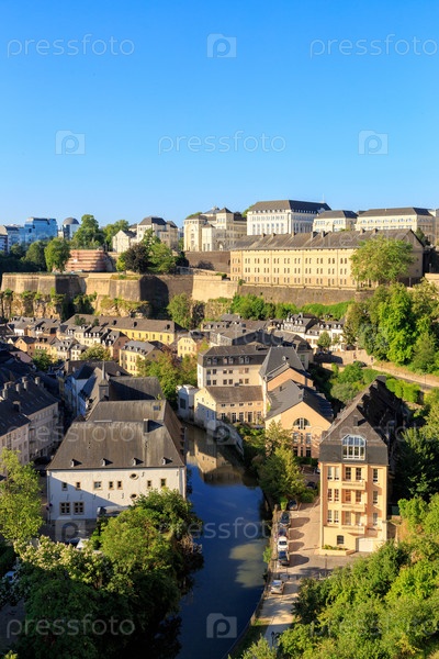 Люксембург город, Люксембург. Река Альзетт, вид на Грунд