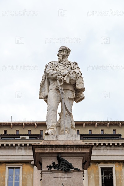 Бергамо, Италия. Памятник Витторио Эммануэлю II Скульпторы Франческо Барзаги (1839-1892) и Луиджи Пагани (1829-1905). Историческая часть города. Нижний город. Дождливая погода