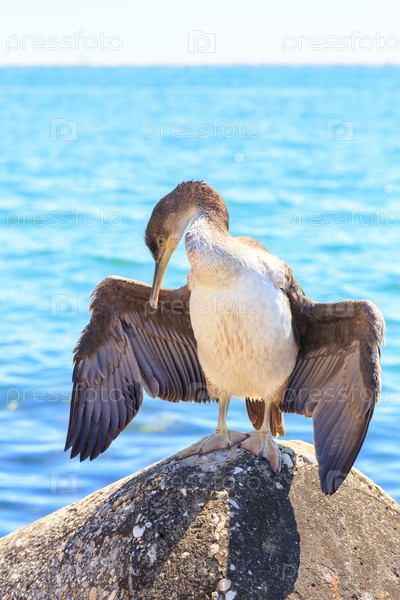 Венеция, Италия. Баклан сушит крылья на волнорезе