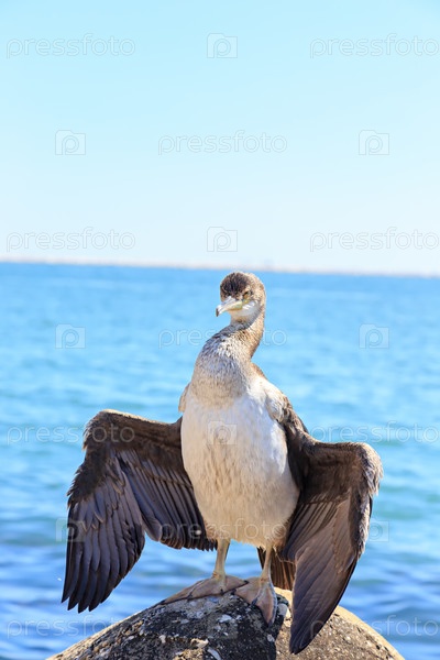 Венеция, Италия. Баклан сушит крылья на волнорезе