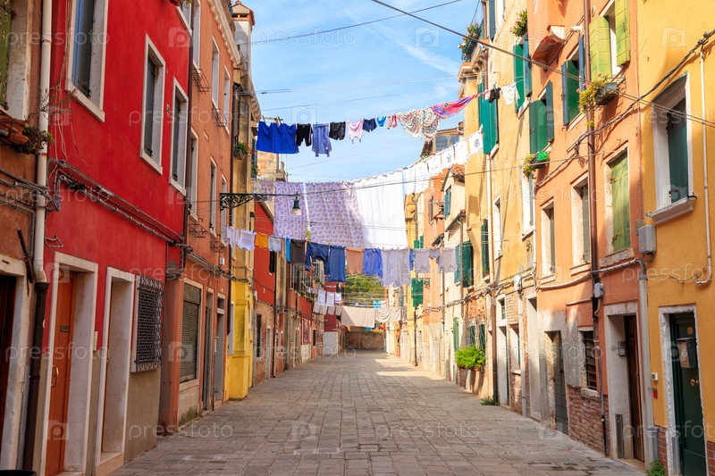 Венеция, Италия. Жилая Венеция. Белье сушить на веревке. Палудо С. Антонио Стрит
