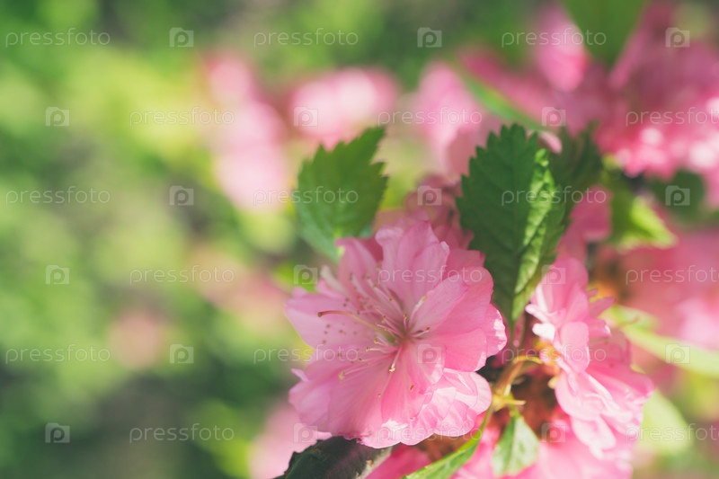 Нежные розовые вишневые цветы на размытом романтическом фоне