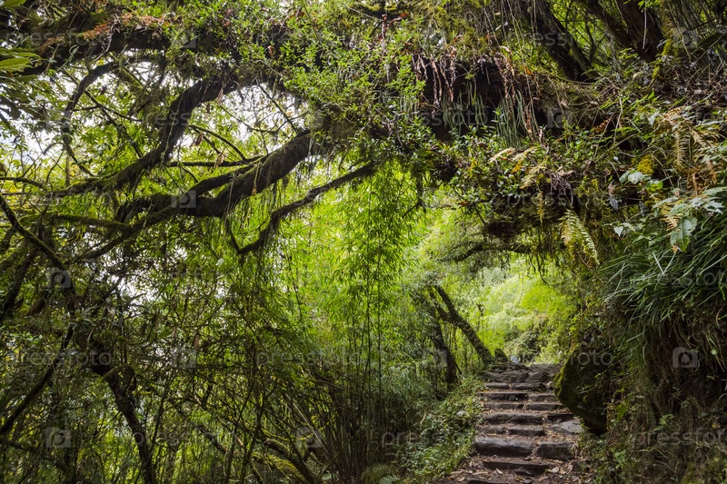 Каменная тропинка в фантастических зеленых тропических джунглях